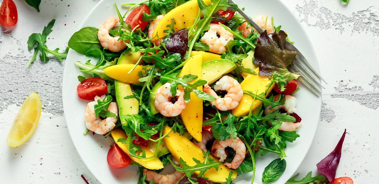 This salad recipe contains bitter greens that have been said to help stimulate the liver. Combined with antioxidant filled mango and tomatos plus protein from prawns topped with an invigorating drizzle of our Turmeric Booster Tonic, you've got yourself one supercharged Detox Salad!