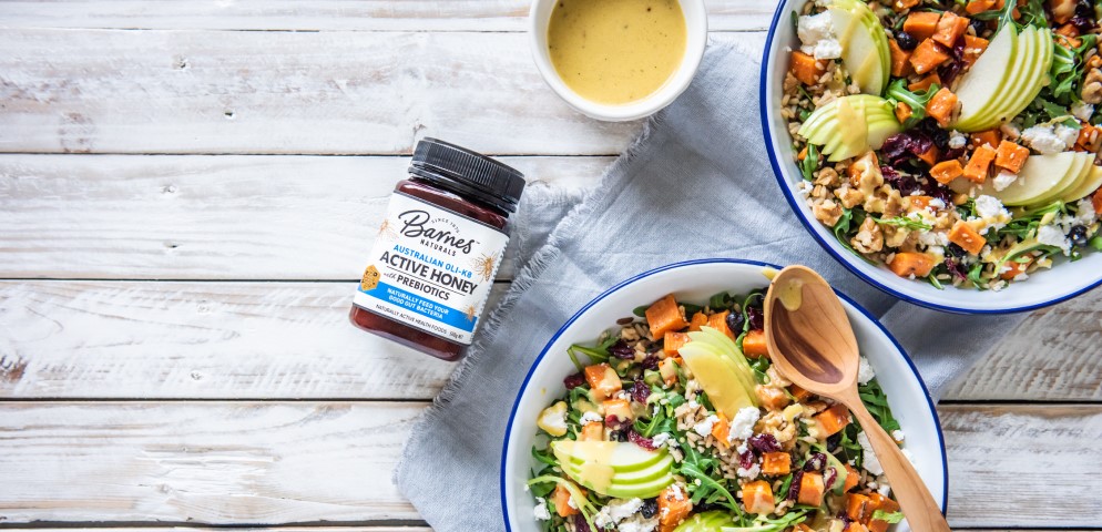 Featuring our new Oli-K8 Active Honey with Prebiotics, this salad is an easy and tasty way to boost your digestive health. It's so good, it's a main meal in its own right!
